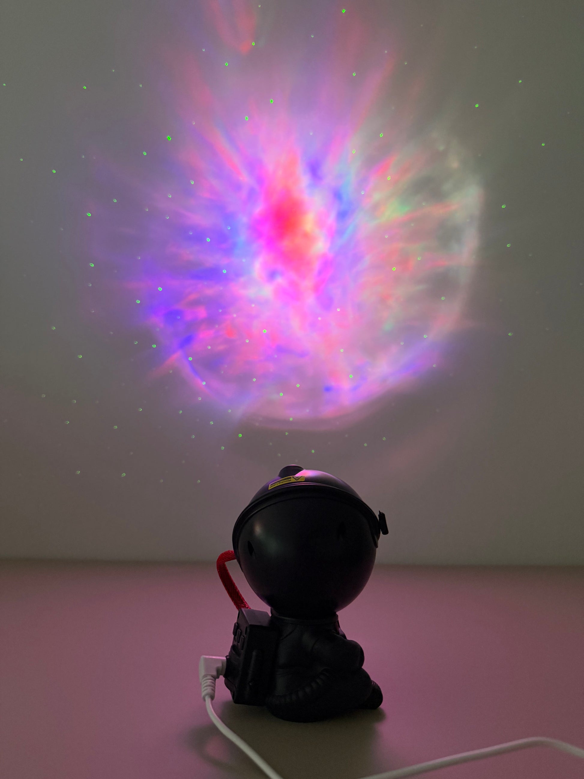 Diese futuristische Actionfigur projiziert den Kosmos an Wand oder Decke und verwandelt jeden Raum in ein kleines Planetarium. Ideal als Nachtlicht, Deko oder Geschenk – stilvoll, modern und einzigartig.