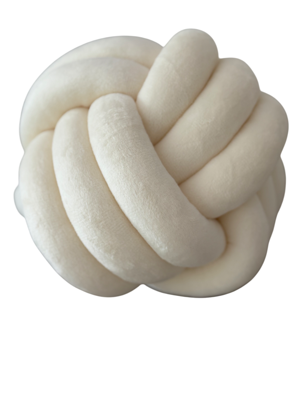 Weißes Knotenkissen (ca. 24 cm Ø) aus hochwertiger Baumwolle – stilvolles Wohnaccessoire für dekorative Akzente. Pflegeleicht und bei 30 °C maschinenwaschbar. Neu und versandbereit, perfekt zum Verfeinern deiner Einrichtung.
