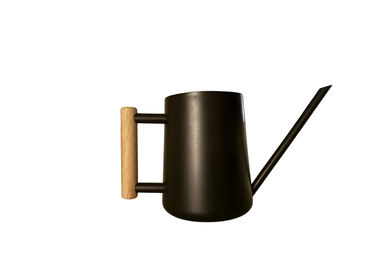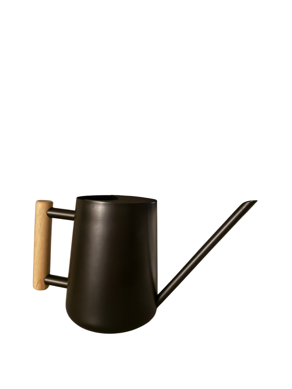 Mattschwarze Gießkanne mit Holzgriff – Design & Funktion